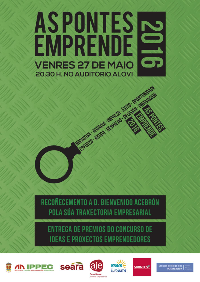 The gala program of economic promotion “As Pontes Emprende 2016” which will take place on May 27 in the cinema Alovi As Pontes, will bring in its third edition a tribute to D. Bienvenido Alvarez Acebrone, our president and founder, as recognition of his business career for its entrepreneurial character in As Pontes.